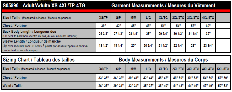 • Sizing Details