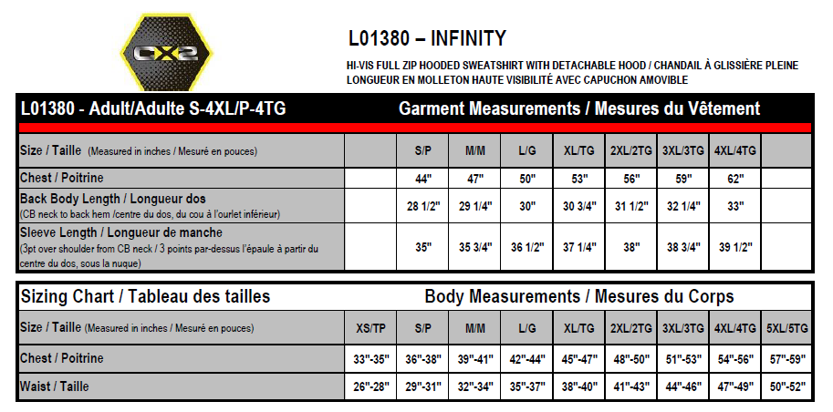 300 gsm – 8.9 oz./yd² – 14.7 oz./lin. yd 100% polyester one side brushed fleece with anti-pill, wicking, anti-bacterial and abrasion resistant finishes. Detachable hood with snaps and adjustable drawcord.    Kangaroo pocket with concealed pocket.  4” contrast hi-vis tape with 2” reflective tape on front and back body and sleeves.  Meets CSA standards.